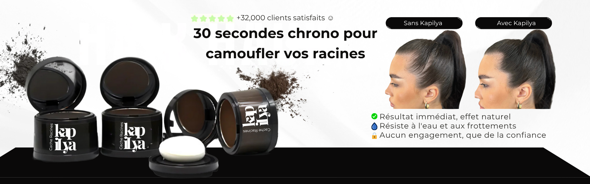 Ne laisse plus les racines visibles te gâcher la journée. Avec Kapilya Cache Racine, sois prêt en quelques secondes et gagne en confiance !